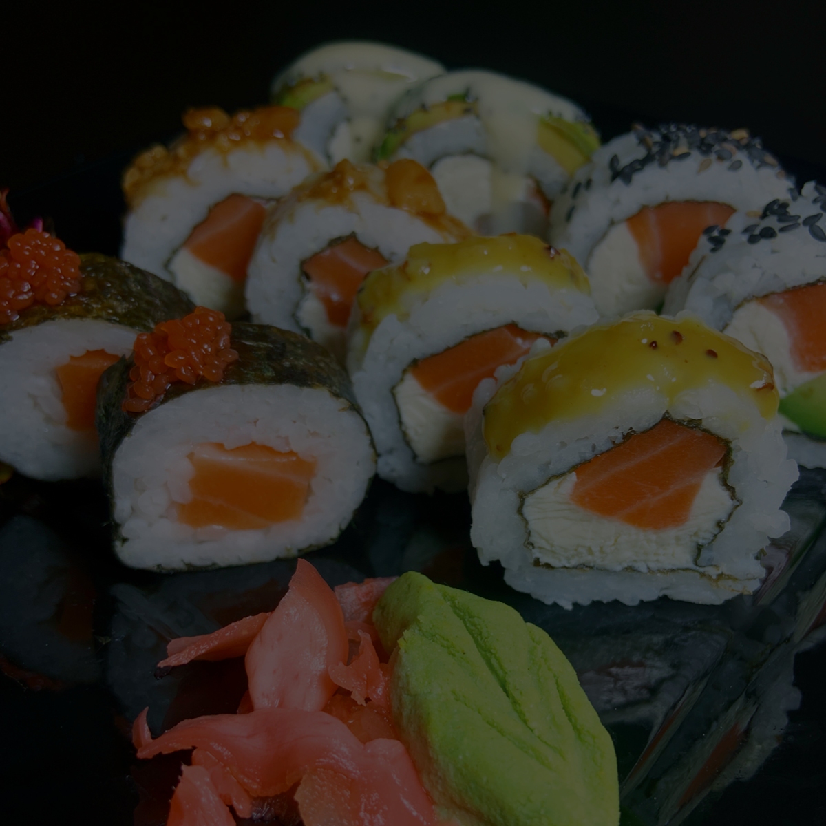 Geishas - Niguiris, Sashimi, Hosomaki salmón, Tempura salmón, NY Phila, NY roll, Bombay